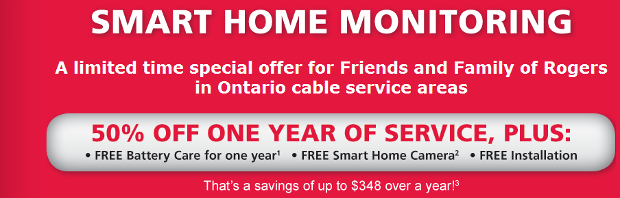 Currently Rogers is also offering a promotion if you go for their Ultimate Package where you get 50% off for one year of service plus “Free battery care for one year, free smart home camera and free installation”.