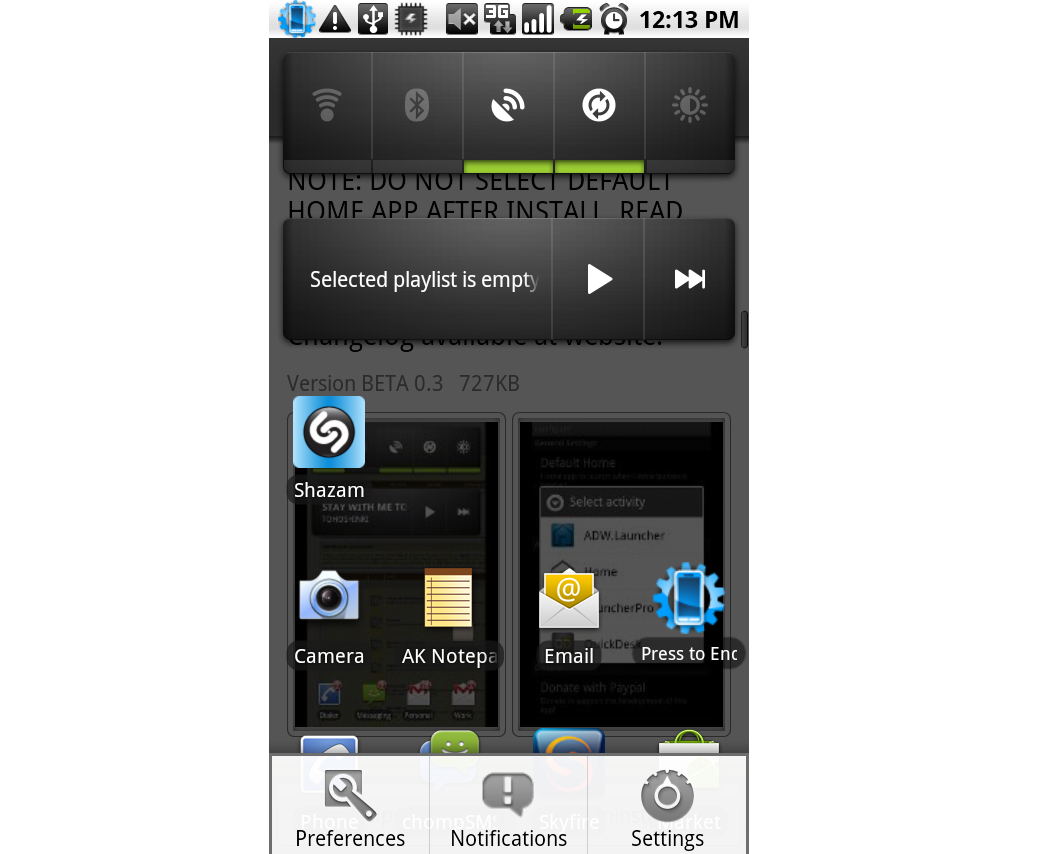Now this does work as another home screen replacement, but what’s great about it is it works WITH any other home screens, so you set up QuickDesk to launch into LauncherPro (for example) and when you press home once you’re like normal at Launcher Pro (or stock Android whatever you want) and when you double tap you’re at your QuickDesk!!